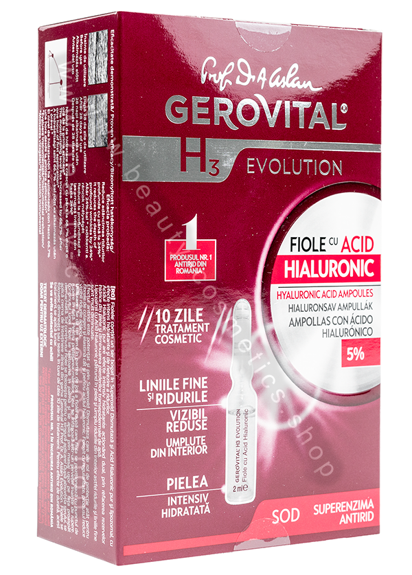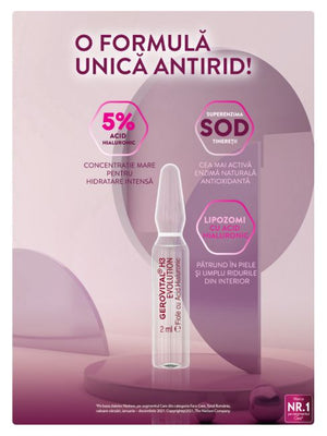 Die Gerovital H3 Evolution Hyaluronsäure-Ampullen enthalten ein hochkonzentriertes Serum aus Superoxiddismutase (SOD) und reiner, liposomaler Hyaluronsäure. Sie spenden intensive Feuchtigkeit und glätten Falten. Das Serum ist für verschiedene Hauttypen geeignet und bietet Vorteile wie: