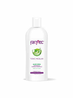 The Farmec Micellar Toner brings to life the potent TriActiv complex: Aloe Vera, Vitamin B3, and essential minerals. Aloe Vera, known for its natural healing and hydrating properties, restores and maintains optimal skin hydration, while Vitamin B3 or Niacinamide fortifies the skin's protective barrier, prevents dehydration, and revives the skin's tone and elasticity. The mineral complex MgCuZn, a blend of invigorating mineral salts, stimulates cellular metabolism and revitalizes your facial tone.