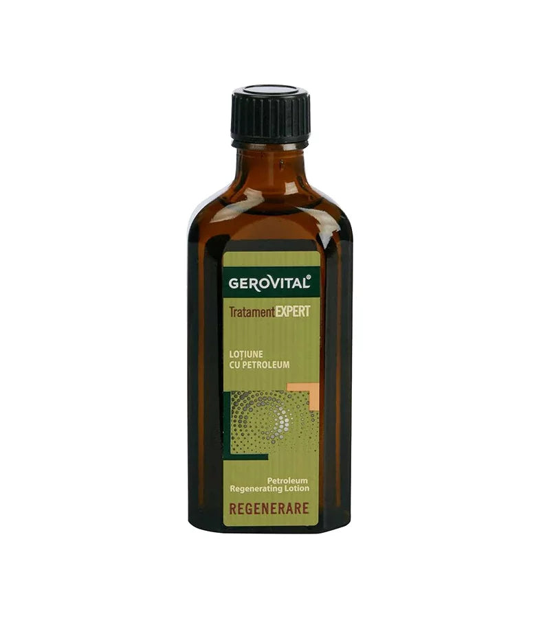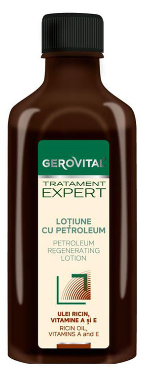 Introducing the Petroleum Regenerating Lotion by Gerovital Tratament Expert - a Farmec product. This 100 ml lotion is specially formulated for degraded, dry, devitalised and shineless hair. With its restructuring and regenerating effects, this lotion restores the health and neatness of your hair.