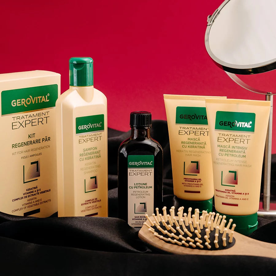 Gerovital Tratament Expert offers a wide range of hair care products, targeting specific hair problems. The products are specially created for the Romanian public, taking into account the water quality, temperate-continental climate, social conditions, stress, and local consumption habits. The range combines cosmetic innovations with traditional Romanian recipes to offer the best solutions for each hair type.