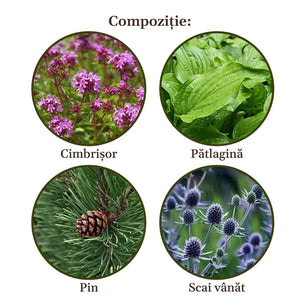 Ingredients: invert sugar; extracts of: Thyme, Cuckoo, Plantain, Pine, and Eryngium planum; essential oils (0.01%) of: Pine, Mint, and Sage.